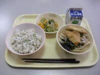 11月20日(月)から本日12月4日(月)までの給食献立を紹介します。20日(月)【麦ご飯・小松菜の味噌汁・チキン南蛮・茹でキャベツ】21日(火)【黒糖パン・白花豆のシチュー・ツナのカレーサラダ】22日(水)【菜飯・きつねうどん・柿なます】24日(金)【麦ご飯・八杯汁・サバの竜田揚げ・きゅうりのゆかり和え】28日(火)【食パン・リンゴジャム・ポークビーンズ・ひじきとチーズのサラダ】29日(水)【麦ご飯・石狩汁・しぐれ煮】30日(木)【根菜カレー・フルーツ白玉】12月1日(金)【ゆかりご飯・芋煮・竹輪とほうれん草の和え物】4日(月)【麦ご飯・カレー肉じゃが・茎わかめの酢の物】でした。「ふるさと綾」産の食材を使い、美味しく調理された栄養バランスのとれた給食でした。いつも美味しい給食ありがとうございます。
