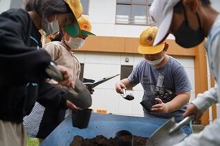 こばさないように慎重に土を入れています。