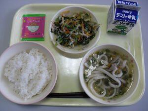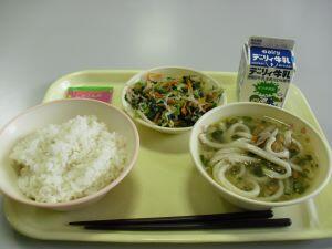 今日の給食の献立は、【むぎごはん・ふりかけ・肉うどん・ちぐさあえ】でした。食材の米はJA綾町、にんじん・こまつな、ねぎは全て「ふるさと綾産」です。「肉うどん」と「ちぐさあえ」は、味がとても良く、麦ごはんとの相性もとても良かったです。今日も、おいしい給食ありがとうございます。