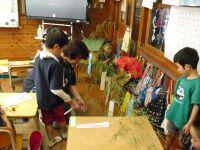 今日1年生は、図工の学習がありました。1年生は短冊に願い事を書き、七夕かざりを作っていました。そして、短冊や作った飾りを笹竹にくくりつけていました。笹竹は地域の方々のご厚意で頂いたものです。地域の方々の学校を大切に思い行動してくださる【綾愛】に心より感謝いたします。明日は七夕ですね。【あやっ子】の願い事が叶いますように!!
