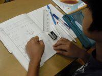 今日4年生・5年生は、算数の学習がありました。4年生は、水のかさの表し方について、「0.1リットル」を10等分したうちの一つ、「0.01リットル」を学んでいました。ビーカーに入った水が今までは「0.8リットルと少し」と表現していた量を「0.84リットル」と正確に表していました。5年生は、三角形の3つの角の和が180度ということを使って「ひし形」の角度を求める取り組みをしていました。かさや図形に関する問題に積極的に取り組む4年生・5年生の【あやっ子】でした。
