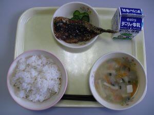 今日の給食の献立は、【むぎごはん・呉汁・イワシのかば焼き・きゅうりの塩もみ】でした。食材の米はJA綾町、「にんじん・ねぎ・きゅうり」は全て【ふるさと綾産】です。7月30日(日)は『土用の丑の日』ですが、夏休み中なので、本日は『うなぎ』に負けないほど栄養満点の『いわしのかば焼き』でした。タレとゴマ味が最高のかば焼きでした。呉汁との相性もとても良かったです。今日も美味しくて、工夫された給食ありがとうございます。