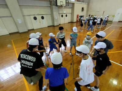 雨天のため潮風追跡ハイキングはできず、室内オリンピックをしました。5つの種目で点数を競いました。