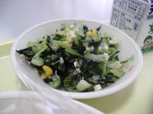 9月24日(火)の献立は【チーズパン・梅塩ラーメン・バンバンジーサラダ】25日(水)は【大山おこわ・五目味噌汁・魚と大豆の青のりがらめ】26日(木)は【麦ご飯・わかめスープ・チャプチャ】本日27日(金)は【麦ご飯・にら玉スープ・鶏肉の香草パン粉焼き・きゅうりの塩昆布和え】でした。どの日の給食もとても美味しかったです。給食に関係する皆様、今週も美味しい給食ありがとうございました。