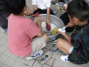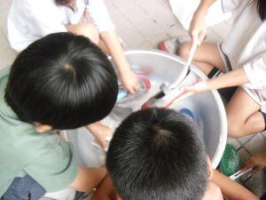 今日1年生は、生活科の学習がありました。お手伝いチャレンジ大作戦という取組で、自分の上履きをゴシゴシと洗っていました。「白くなったよ!!」「きれいになったよ!!」と友達に伝えながら、ブラシを一生懸命動かす1年生の【あやっ子】でした。