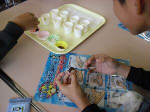 今日5年生は、家庭科の学習で【香港式カフェ「Cohk(コーク)」の上村様】を講師としてお招きし、味覚の授業を行いました。鼻をつまんで食べる時と、においを感じながら食べる時の違いを実際に体験し、その後、画像を見ながら味覚・嗅覚・触覚・視覚・嗅覚・触覚の五感について確認しました。「上村様、丁寧に分かりやすく教えてくださり本当にありがとうございました。」体験しながら様々な味覚について学んだ5年生でした。
