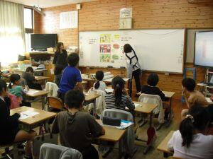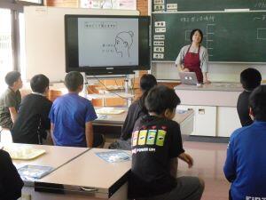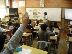 今日3年生は、学級活動の時間に食育の学習を行いました。「どんな食べ方をすればいいのか」を考える学習で、三食食品群とその働きについて学んでいました。難しい言葉の問題でも、積極的に手を挙げて発表する3年生でした。4年生は体育の学習で投げる運動に取り組んでいました。準備運動として、いろいろな種類のおっかけ遊びでをした後、的であるコーンにボールを投げて倒す活動をしていました。コーンに当たってもなかなかコーンが倒れないこともあり、ボール拾いなどグループで協力して運動を楽しむ4年生でした。