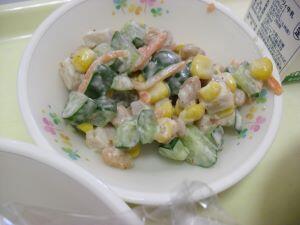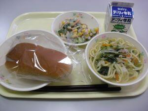 今日の献立は【黒糖パン・野菜たっぷりラーメン・豆とハムのコロコロサラダ】でした。野菜たっぷりラーメンは、ガラと豚骨の混ざったスープに野菜の出汁が染み出し、深みのあるとても美味しいラーメンでした。豆のサラダもノンエッグマヨネーズで味付けされ、とても美味しかったです。それでは本日の綾町食材の生産者の方々を紹介します。小松菜が割付地区の福重さん、しめじが古屋地区の宮崎産業さん、きゅうりが麓地区の安永さんでした。今日も美味しい食材・美味しい調理ありがとうございました。