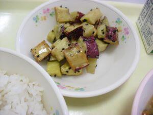 今日の献立は【中華丼・大学芋】でした。今回は給食時間の放送内容を紹介します。『今日のサツマイモは綾町の郡さんちのサツマイモがメインですが、綾小学校2年生の皆さんが生活科で作ったサツマイモも、全校のみんなで食べてもらいたいといただきました。サツマイモにはお腹のそうじをしてくれる食物繊維が多く含まれているほか、身体を温める効果もあります。よくかんで味わって食べましょう。』でした。綾町久木野地区の郡さん、2年生の皆さん、美味しいサツマイモありがとうございました。そして美味しい調理ありがとうございました。