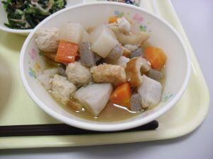 今日の献立は【麦ご飯・おでん煮・梅のおかか和え】でした。おでん煮は、醤油と出汁の味が具材にしっかりと染みこみ、とても美味しく、ご飯がどんどんすすみました。さっぱりとした梅のおかか和えとの味のバランスもとても良かったです。それでは、本日の綾町食材の生産者の方々を紹介します。こんにゃくが宮原地区の大山食品さん、小松菜が割付地区の福重さん、大根が揚町地区の大野さん、きゅうりが四枝地区の清水さんでした。今日も美味しい食材・美味しい調理ありがとうございました。