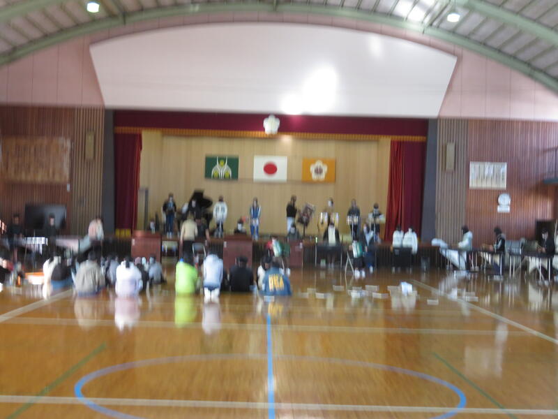 12月9日(金)の午後から、みんなで綾中学校に行きました。「中学校入学説明会」に参加するためです。大きくて広い体育館に「きれ~い」という声が聞こえてきました。