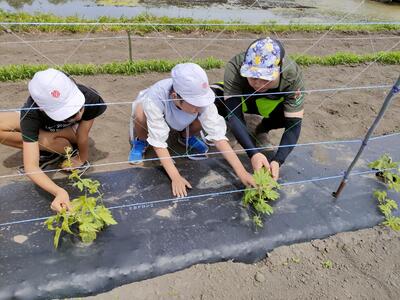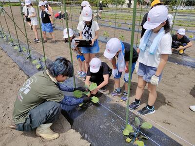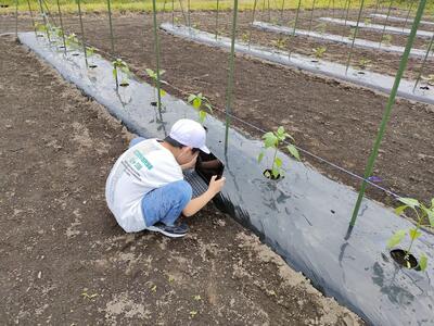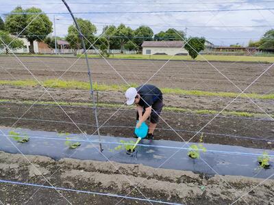 昨日は全員で畑に行き、野菜の管理の仕方についてJA青年部の方々に習いました。野菜ごとに脇芽をとることや、茎が倒れないように固定することを教えてもらいました。先日の強風で茎が折れてしまったものもありましたが、植え替えをして、全体的に順調に育っているように思います。