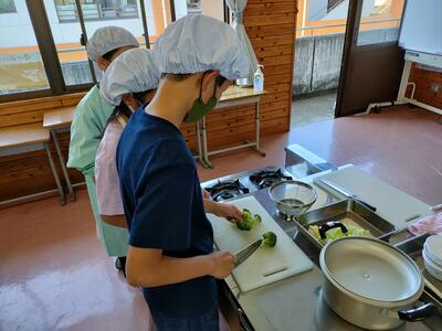 調理はゆで野菜サラダです。うまく切れたか、ちゃんとゆでられたか、味はどうだったか。聞いてみてください。