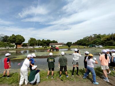 野菜管理の後は田んぼの代かきを見ました。田植えが近づいています。