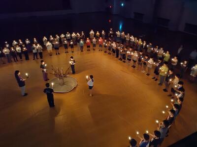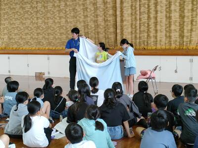 本日最後の活動。キャンドルファイヤーをしました。3部構成で、2部では高城小の子たちと交流しました。仲良くなった子もいるようでした。