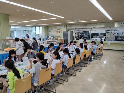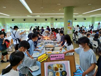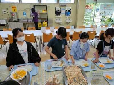 楽しみにしていた昼食です。自分で量を考えて取ります。中には取りすぎて食べきれなかった子も。
