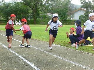 リレーの選手も一生懸命走りました。10月3日が運動会です。