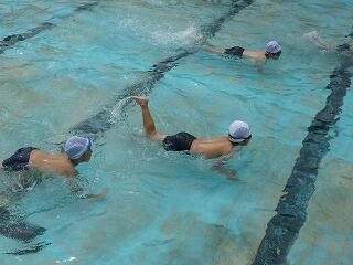 小学校の大きなプールで泳ぎました。気持ちいい!