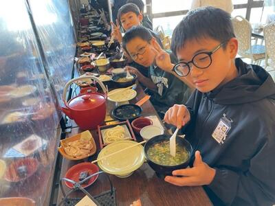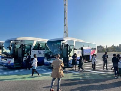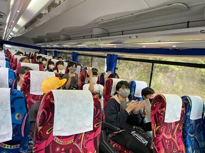 霧島サービスエリアに到着しました。予定より少し早めに移動できています。出発式ではたくさんの保護者の皆さまにお見送りいただき、ありがとうございました。車酔いする子もなく全員元気に過ごしています。