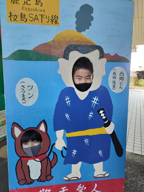 桜島サービスエリアでトイレ休憩。顔抜きのパネルがあればやりたくなりますね。