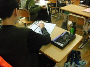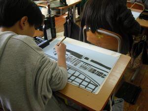 今日6年生は、図工の学習で版画に取り組んでいました。タブレットで撮影した綾小学校の画像を見ながら、版木に下書きする6年生でした。白黒がイメージしやすいように「墨」を活用していました。版画作品完成の日がとても楽しみです。