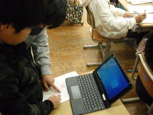 今日3年生は、総合的な学習の時間がありました。綾の森をもっとよく知ろうと、タブレットを使って綾の生き物を調べていました。ワークシートに調べたことをまとめる3年生でした。5年生は算数の学習で、割合について学んでいました。百分率と歩合について確認した後、線分図を使いながら、「3割引き」について考えていました。元の値段を「1」として考える5年生でした。