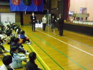 今日1年生は、国語の学習で「くわしくきこう」という内容の学習に取り組んでいました。冬休み読んだ本の紹介に対して、たくさんの質問をしていました。2年生は体育の学習で、元気に縄跳び運動に取り組んでいました。3年生は理科の学習で、磁石の働きについて実験をしていました。紙を間に挟んでも磁石が働くことを知りました。4年生は算数の学習で、学習方法を自分たちで決めて進める自由進度学習に取り組んでいました。5年生は理科の学習で、食塩を水に溶かす実験をしていました。2グラムずつ7回8回と溶かしていました。6年生は総合的な学習の時間で、3学期に取り組む「雛山祭り参加活動」・「PR活動」・「地域の方々とのレクレーション活動」の3グループに分かれて、これからの計画を立てていました。