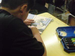今日5年年生は図工の学習で、多色版画に取り組んでいました。一彫り、一彫り丁寧に彫り、集中して色をつける5年生でした。作品の完成がとても楽しみです。