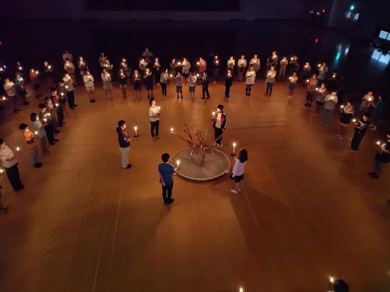 キャンドルファイヤーは3部構成でした。1部と3部は火を囲み幻想的な雰囲気。2部では宮崎東小学校とお互いに学校紹介と交流を行いました。盛り上がったので詳しくはおみやげ話で聞いてください。