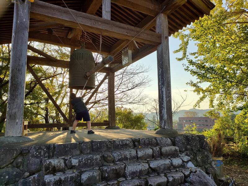 6年生が毎日行っている鐘つきを、5年生の企画委員が代わりにしました。6年生から教えてもらったやり方がしっかりできました。
