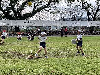 4年生は、徒走・リレー・団技に出場しました。どの競技も力いっぱいすることができました。特に、綾小、初登場の左近太郎が楽しく、みんなの心を合わせてがんばることができました。ボールをキャッチするたびに見ている人たちが喜んでくれてうれしかったです。