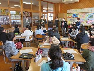 「総合的な学習の時間」に綾町の議員さんや役場の方々が授業を見に来てくださいました。今、6年生は「綾町プロジェクト」というテーマで綾町のよさを発信する材料を集めています。いきなりの質問にも丁寧に答えてくださって本当にありがたかったです。綾町のよさについていろいろなお話を聞くことができました。「なるほど~」と自分たちが思いつかないような発見もあり、とても充実した時間となりました。