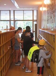そして、楽しみにしていた1年生が登校してきました。初日は、教室や靴箱のところで1年生のサポートをしている人がいました。