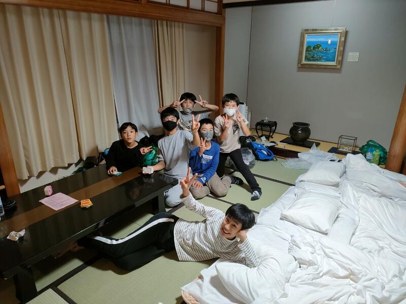 就寝前のひと時を楽しく過ごしています。明日も早くから活動します。全員元気に過ごしていますよ。おやすみなさい!