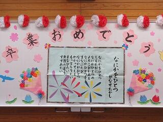 前日には、5年生が掃除や設営を頑張ってくれました。学校中のみなさんのおかげで、気持ちよく卒業式を迎えることができました。