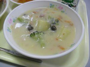 今日の献立は【黒糖食パン・豆乳クリームシチュー・フルーツカクテル】でした。今回は給食時間に流れた放送内容を紹介します。『今日のフルーツカクテルには、季節のフルーツ「梨」が入っています。この梨は、綾町の中島さんが作ったもので「秋月」という品種です。綾町内では他に季節をずらして「二十一世紀」「豊水」「新高」などができるそうです。今日は全校で23個の梨を使っています。みずみずしい新鮮な梨を味わっていただきましょう。』今日も美味しい給食ありがとうございました。
