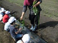 総合的な学習の時間【5年生:田の肥料まきと野菜の苗植え】