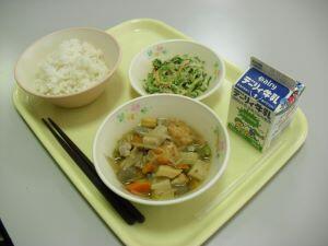 今日の献立は【麦ご飯・中華スープ・マーボー春雨】でした。中華スープ・マーボー春雨どちらにも、ごま油が使ってあり香りがよく、とても美味しい味付けでした。今日の綾産食材は、米が揚町地区のJA綾町さん、にんじんは杢道地区の爰野さん、えのきたけは古屋地区の宮崎産業さん、長ネギは尾立地区のオーガニックファーム綾さんでした。今日も美味しい食材・美味しい調理ありがとうございました。