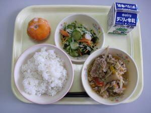 先週14日(金)は、「日向の日」給食でした。毎月16日は(1ひ)(6む)(日か)の日で地産地消の献立ですが、今月は16日が日曜日なので14日が「日向の日」献立でした。米はJA綾町、豚肉はAコープ綾店の綾ぶどう豚、にんじん・千切り大根・ねぎ・玉ねぎ・きゅうり・青しそは全て「ふるさと綾産」でした。美味しい味付けの豚と野菜をご飯にかけて食べました。そして、青しその効いた「きゅっ」と感じる和え物を食べ、さっぱりした美味しさを楽しみ、最後の冷凍ミカンで暑さの中に「涼」を感じることができました。美味しい給食に感謝の日々です。ありがとうございました。