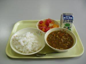 今日の給食は、1学期最後の給食でした。献立は、【ごはん・キーマカレー・フルーツジュレ】です。米はJA綾町、エリンギ・にんじん・すいかは、ふるさと綾産です。夏にぴったりのキーマカレーは、何杯でもおかわりできそうな美味しさでした。そしてフルーツジュレでは、綾産のスイカを使った水分たっぷりのデザートでした。1学期間、とても美味しい給食ありがとうございました。給食に携わる全ての皆様に感謝申し上げます。