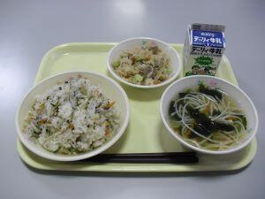 昨日10日(水)に、新年最初の給食がありました。献立は【七草寿司・魚そうめん汁・千切り大根の炒め煮】です。今回も、給食時間に放送委員会の子どもたちによって放送された内容を紹介します。『今日は、お正月メニューです。「七草」とは「せり・なずな・はこべら・ほとけのざ・すずな・すずしろ」の七種類の野菜や野草のことです。1月7日には、この七草をおかゆに入れて食べる習慣があります。1年を健康に過ごすことができるようにと願って食べるものです。今日はみなさんの健康を願い、七草寿司を作りました。七草の全部は手に入らなかったので、せりとすずしろの大根葉の2種類を入れました。おいしくいただきましょう。』ふるさと綾の食材を使ったとても美味しい給食でした。美味しい食材の提供と調理に心より感謝申し上げます。給食に関係する皆様、本年もどうぞよろしくお願いいたします。