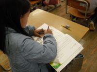今日1年生は生活科の学習がありました。「ひろがった笑顔を伝えよう。」ということで、冬休み中のお手伝いについて振り返っていました。2年生は、運動場で長縄の連続跳びに挑戦していました。元気に楽しく縄跳びに取り組んでいました。3年生は外国語活動で春夏秋冬の生き物クイズをしていました。英語での問題で、ヒントも英語ですが、ALTの先生の発音をしっかりと聞いていました。4年生は国語の学習で、辞書を使って熟語を調べていました。ワークシートに書かれている言葉について予想を立てて調べていました。5年生は社会の学習で、新聞が出来るまでを調べていました。校正という言葉についても教科書を使って確認していました。6年生は算数の学習で「いくつかの中から順に選ぶ方法」について取り組んでいました。順に選ぶ方法もいくつかあり、自分にとって一番分かりやすい方法を確認していました。