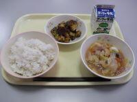 11日(木)の献立は【中華丼・大学芋】、12日(金)が【麦ご飯・雑煮・紅白なます・田づくり】、15日(月)が【麦ご飯・肉じゃが・春雨の酢の物】でした。食材で使われた米、千切り大根、にんじん、白菜、かぶ、大根、じゃがいも、きゅうり、小松菜は全て綾町産です。地域の方々には、今年も美味しい食材を提供頂き心より感謝いたします。毎日美味しい給食ありがとうございます。
