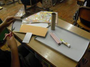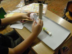 今日4年生は図工の学習がありました。コロコロ転がるビー玉の特徴を利用して、ビー玉を動かすことで楽しむ作品を作っていました。丸い筒を作ってビー玉の道を作るなど、アイデアを出しながら楽しそうに作る4年生の【あやっ子】でした。