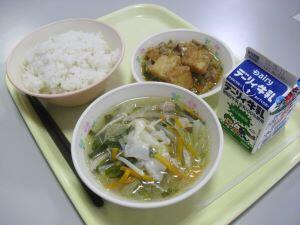 今日の給食献立は、【麦ご飯・ワンタンスープ・厚揚げの甘辛炒め】でした。「ワンタンスープ」はワンタンと野菜がたっぷりで味の濃さが程よく、濃いめの味付けの「厚揚げの甘辛炒め」とのバランスが良かったです。「麦ご飯」を食べる手がすすみました。今日も美味しい給食ありがとうございます。それでは、今日も【ふるさと綾産食材】の生産者の方を紹介します。米は揚町地区のJA綾町さん、にんじんは神下地区の方、キャベツは揚町地区の方、ニラは中堂地区の方、たまねぎは杢道地区の方です。美味しい食材の提供本当にありがとうございます。今日も感謝・感謝です。