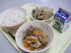 今日の給食献立は【右ご飯・筑前煮・きびなごフライ・きゅうりのゆかり和え】でした。きびなごフライは鹿児島郷土料理の一つで、魚の臭みもなくカリッとした食感でとても美味しかったです。筑前煮も鶏肉・野菜と具たっぷりでとても美味しい味付けでした。今日も美味しい給食ありがとうございました。それでは今日も【ふるさと綾産食材の生産者の方々】を紹介します。米は揚町地区のJA綾町さん、にんじんとごぼうは杢道地区の方、こんにゃくは宮原地区の方、きゅうりは麓地区の方です。美味しい食材の提供、そして美味しい調理いつもありがとうございます。