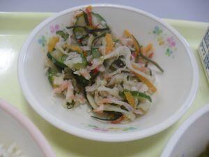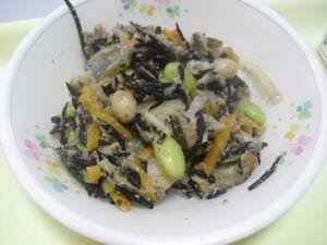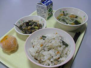 昨日20日(木)の給食献立は【鶏ごぼうご飯・魚そうめん汁・まごはやさしいひじきの煮物・冷凍ミカン】でした。今回は、給食時間中の放送でアナウンスされた内容を紹介します。『毎年一度は出している、「まごはやさしいひじきの煮物」です。もちろん「まごはやさしい」は語呂合わせです。何だったか、覚えていますか?「ま」は「まめ」、「ご」は「ごま」、「わ」は「わかめ」で海藻のことです。「や」は「やさい」、「さ」は「さかな」、「し」は「しいたけ」、「い」は「いも」です。これらを取り入れると栄養バランスのとれた献立になります。しっかり食べてほしいです。』  ※栄養バランスとのとれた美味しい給食いつもありがとうございます。