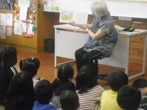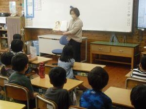 今日は金曜日で、読み聞かせボランティア「まんまるの会」様による読み聞かせがある日でした。今回は今週18日(火)の給食献立「りっちゃんサラダ」のもとになる【サラダでげんき】の絵本も読んでいただきました。給食と絵本がつながってとても嬉しそうに読み聞かせを聴く1・2年生の【あやっ子】でした。「まんまるの会」の皆様いつも御支援ありがとうございます。