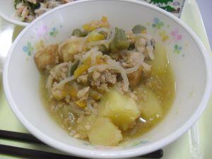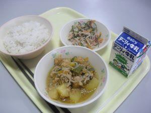 今日の給食献立は【麦ご飯・ジャガイモのそぼろ煮・千切り大根の酢の物】でした。そぼろ煮の「甘辛さ」と、千切り大根の酢の物の程よい「すっぱさ」に「ご飯」がすすみました。今日も美味しい給食ありがとうございました。それでは今日も【ふるさと綾産食材の生産者の方々】を紹介します。米と千切り大根は揚町地区のJA綾町さん、じゃがいもとにんじんは杢道地区の方、こんにゃくは宮原地区の方、きゅうりは麓地区の方です。今日も美味しい食材の提供、美味しい調理、ありがとうございます。給食に関係する全ての皆様に、【感謝・感謝】の毎日です。