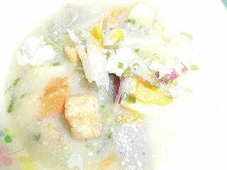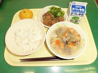 魚の変わり揚げは、子どもたちにも大人気です。秘訣は、ソース味!水分を飛ばすために、炒ったパン粉をまぶす手間もかけています。また今日のさつま汁には、2年生が生活科でつくった【サツマイモ】が入っていました。今年は長雨続きで思ったような収穫量ではありませんでしたが、2年生が一生懸命に掘ったおいも達でした。ごちそうさまでした。